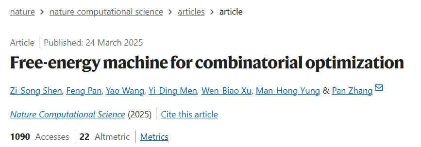 [1] Shen, ZS., Pan, F., Wang, Y. et al. Free-energy machine for combinatorial optimization. Nat Comput Sci (2025). https://doi.org/10.1038/s43588-025-00782-0
