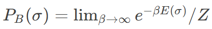 对于组合优化问题,其目标函数E(σ)可映射为物理系统的能量模型,其零温玻尔兹曼分布: