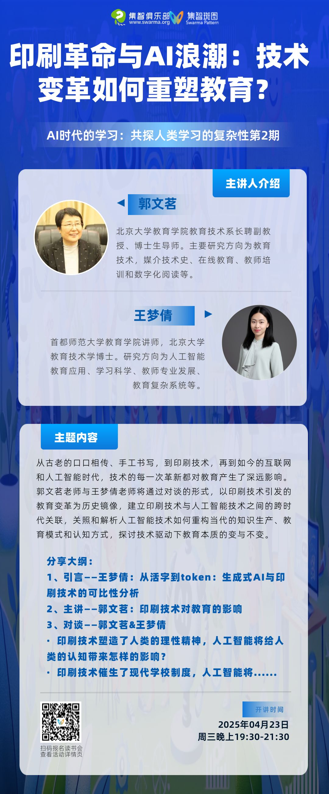 印刷革命与AI浪潮:技术变革如何重塑教育?丨周三直播·「AI时代的学习:共探学习的复杂性」主题读书会