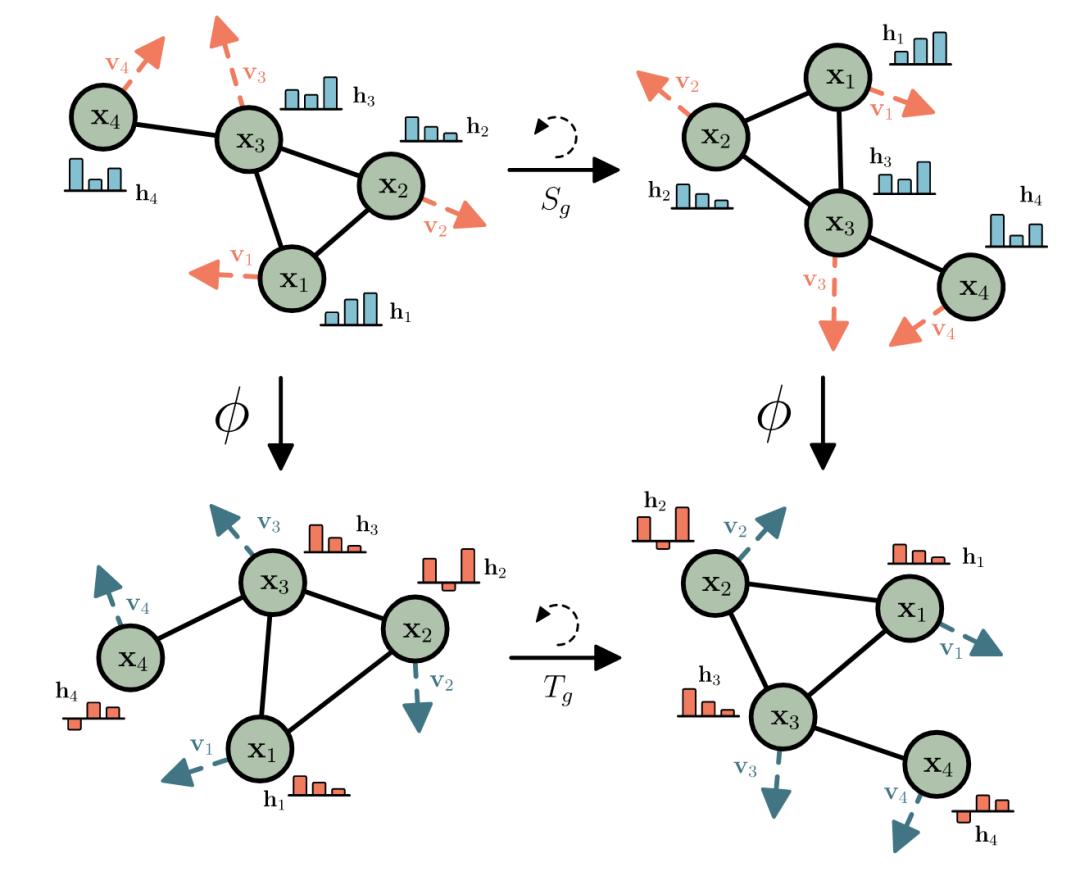 等变神经网络网络工作原理示意图 | 来源:Vı́ctor Garcia Satorras, Emiel Hoogeboom, Max Welling