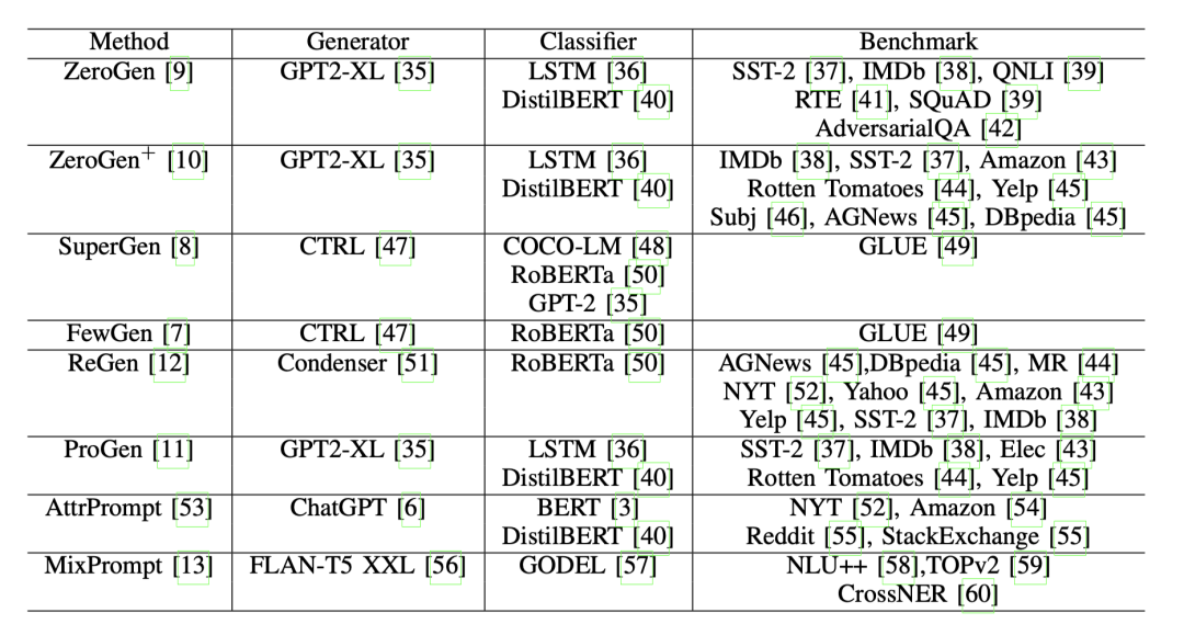 然而,若直接将有限标签和任务信息嵌入到提示中,LLMs生成的数据可能与任务无关,缺乏多样性,规模也很有限。因此需要更先进的提示技术:如属性控制提示(Attribute-controlled prompt),通过指定一组属性、并在提示模板中进行属性混合,以此定义任务获取合成数据的混合软提示方法 [15],或从LLMs中直接提取特定属性的提示,并查询生成特定数据的AttrPrompt [16];如词汇化技术(Verbalizer),通过将作为条件的属性类扩展为一组语义相似的提示来促进多样化数据生成,例如 MetaPrompt [17]首先从LLMs获取扩展提示,然后利用丰富的提示进一步提示LLMs生成数据。