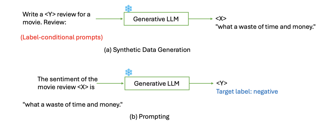 LLMs在生成特定标签的合成数据(a)与提示词预测生成标签(b)之间的比较 [13]|图片来源:Xu Guo&Yiqiang Chen.(2024) “Generative AI for Synthetic Data Generation: Methods,Challenges and the Future”