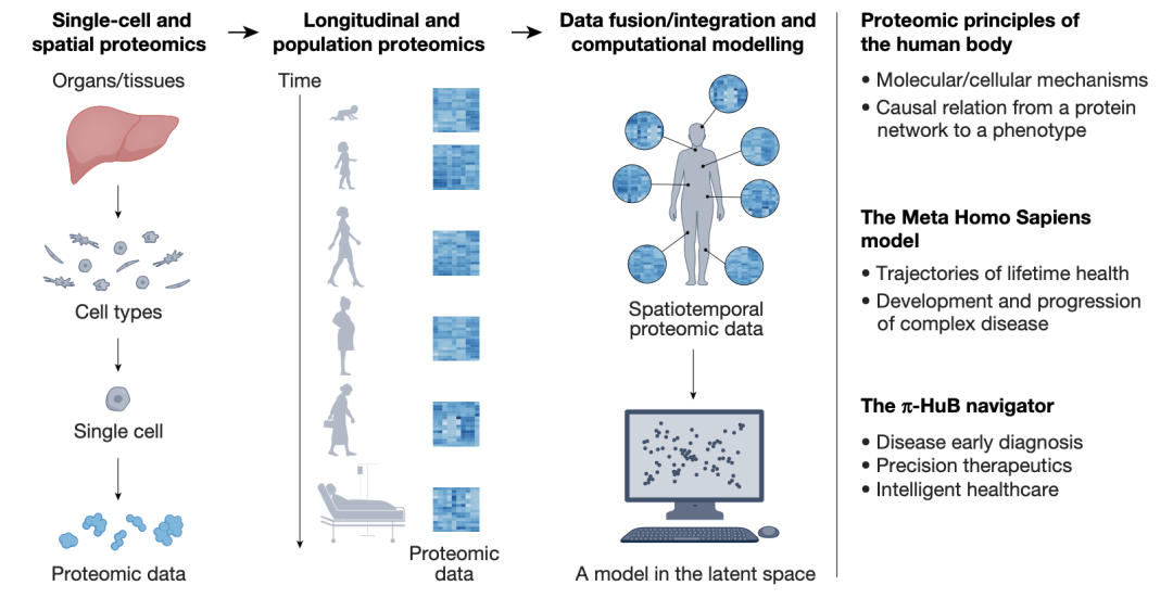 π-HuB项目的总体目标|图片来源:He, F., Aebersold, R., Baker, M.S. et al. π-HuB: the proteomic navigator of the human body. Nature 636, 322–331 (2024).”