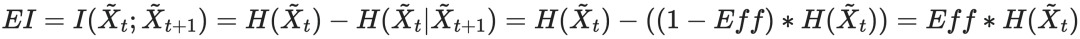 是干预后的因果变量,Eff为动力学的有效性。由公式可以看出EI的大小与干预的概率分布的熵有关。