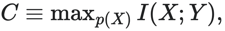 Claude Shannon在信息论中提出信道具有一定的容量。信道容量是指信道以最具信息性和可靠性的方式将输入转化为输出的能力,信道中信息传输的速率对输入概率分布 p(X) 的变化非常敏感。信道容量 (C) 定义为使互信息达到最大值的输入变量分布,这也是信道能够可靠传输信息的最大速率:
