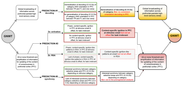 如果后部皮层激活与意识内容解码相关,支持IIT;如果PFC激活相关,支持GNWT。 -