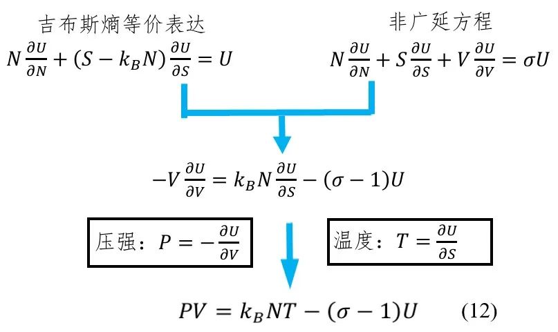 如图4所示,吉布斯熵的等价表达式(5)与非广延表达式(11)结合就得到软物质气体方程(12)。