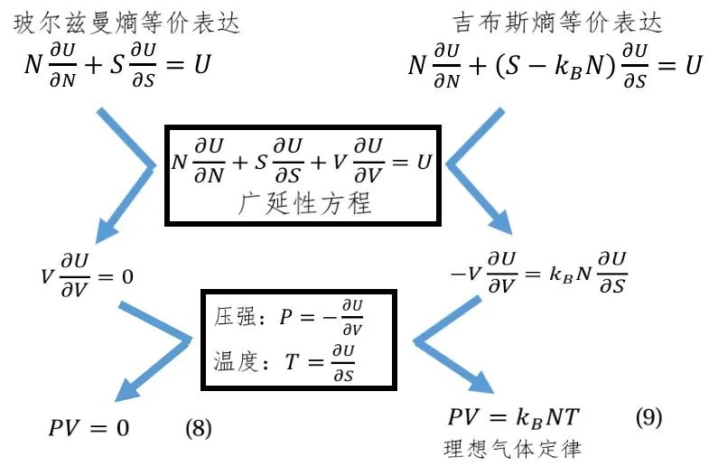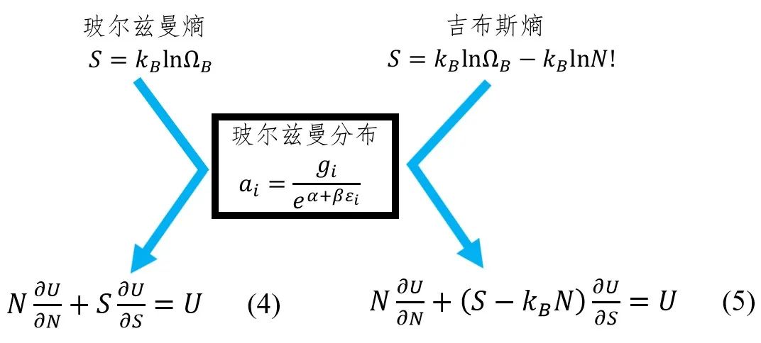 图2:统计力学熵被写为内能U、粒子数N、热力学熵S的等价表达式