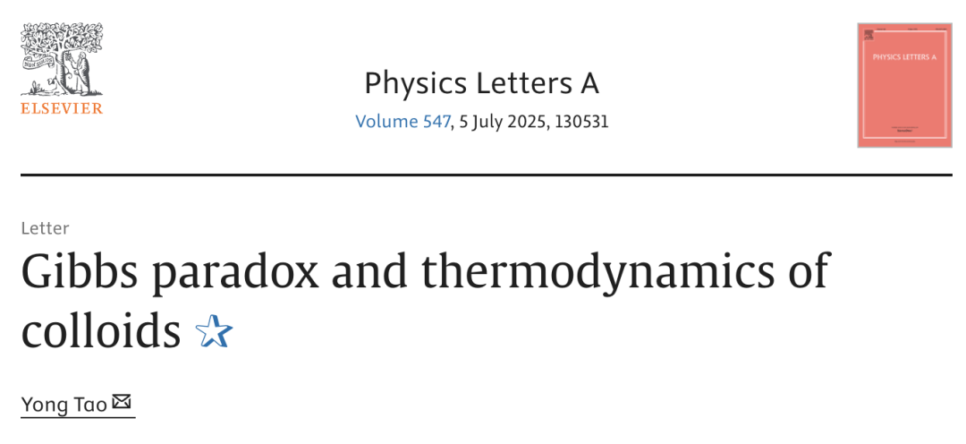 [8]. Y. Tao: Gibbs Paradox and Thermodynamics of Colloids. Physics Letters A547 (2025) 130531