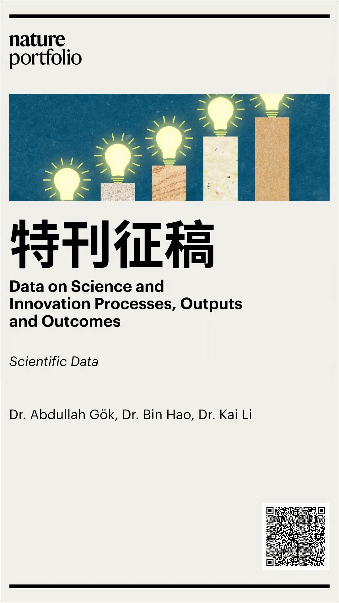 要深入剖析这一复杂的科研生态系统,不仅需要先进的分析方法和建模工具,更离不开高质量、可复用、具有代表性的数据支持。开放获取的数据集不仅能提升研究的透明度与可信度,也是推动科学发现、实现跨学科合作、促进政策制定的重要基础。这与《Scientific Data》期刊的核心理念高度契合:我们坚信,开放研究数据的共享对于推动科学进步至关重要;描述数据获取与使用方式的文章能够极大促进数据的发现与再利用,并支持FAIR原则(可查找、可获取、可互操作、可重用)在各学科中的应用。