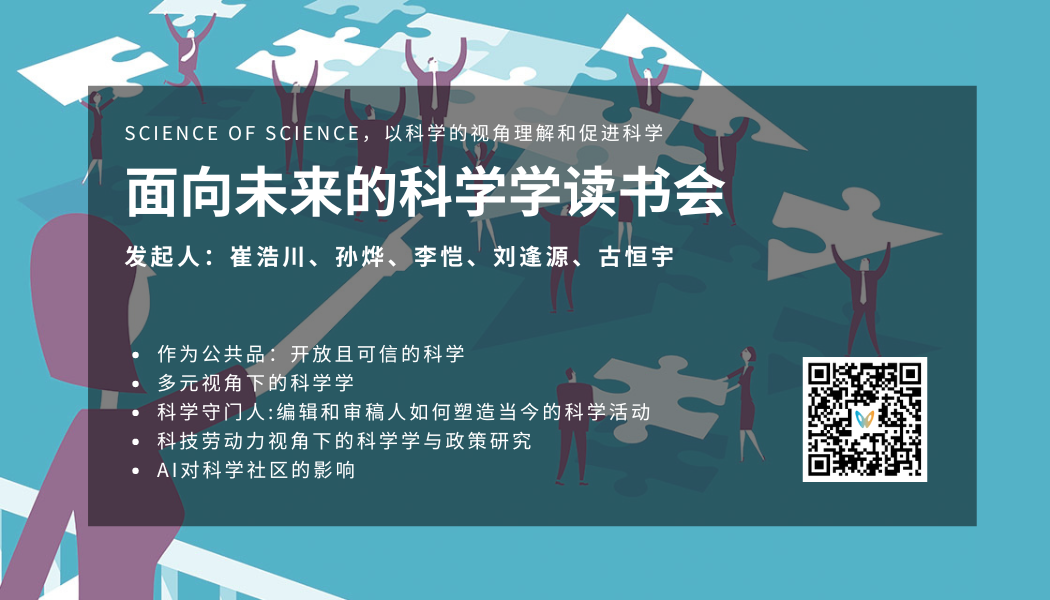 集智俱乐部面向未来的科学学读书会中,李恺博士作为发起人兼主讲人,连同其他四位不同学术背景的专家学者,讨论科学学概念的演变、科学的多元化挑战,科学开放性面临的危机,新兴技术对科学冲击以及科学家流动与科技劳动力政策等,帮助我们应对科学研究复杂系统中科学评估、科学创新、科学应用等的系列问题与挑战。感兴趣的可以扫码查看视频回放👇
