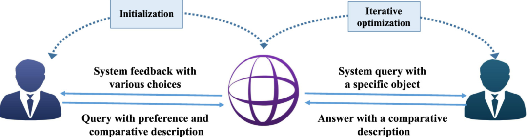 关于计算机视觉(CV)领域,目前人机交互技术主要探索如何利用弱标注来提供反馈,并分析如何为用户提供统一的干预体验。其应用涉及多个任务,如行人再识别(Re-ID)、人脸识别、三维点云目标检测以及目标检测等。尽管现有大量行人再识别方法在大量标注数据的训练下能取得优异的结果,但这些模型在实际自然环境中部署时表现并不理想,原因在于自然环境中大量新数据未出现在训练集里。更复杂的是,这些新数据会随着时间不断积累,导致模型失效。为解决此问题,Liu 等人[55]提出了一种基于强化学习的人机循环模型,打破了预标注的限制,并通过持续收集数据对模型进行升级,目标是在最大化再识别性能的同时,最小化人工标注工作量。