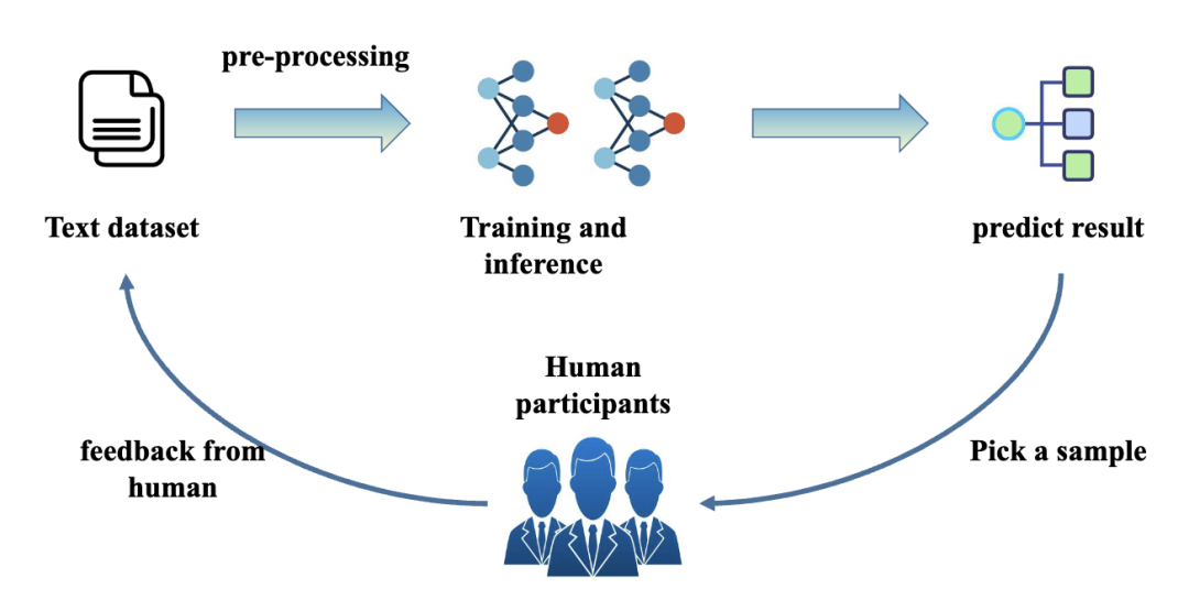 图6简要展示了个体与自然语言处理模型训练及推理过程之间的协作关系。该持续执行的循环在一定程度上促进了更可靠的人机合作伙伴关系,从而提升了NLP系统的准确性和鲁棒性。