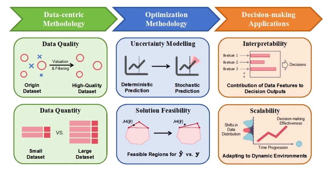 针对数据驱动优化理论在行业应用情况,文章从“数据质量–建模优化–决策应用”的全流程分析挑战并提出相应技术性解决方案。