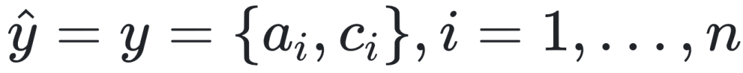 与真实值y={ai,bi,ci},i=1, …,n 很可能不相等。