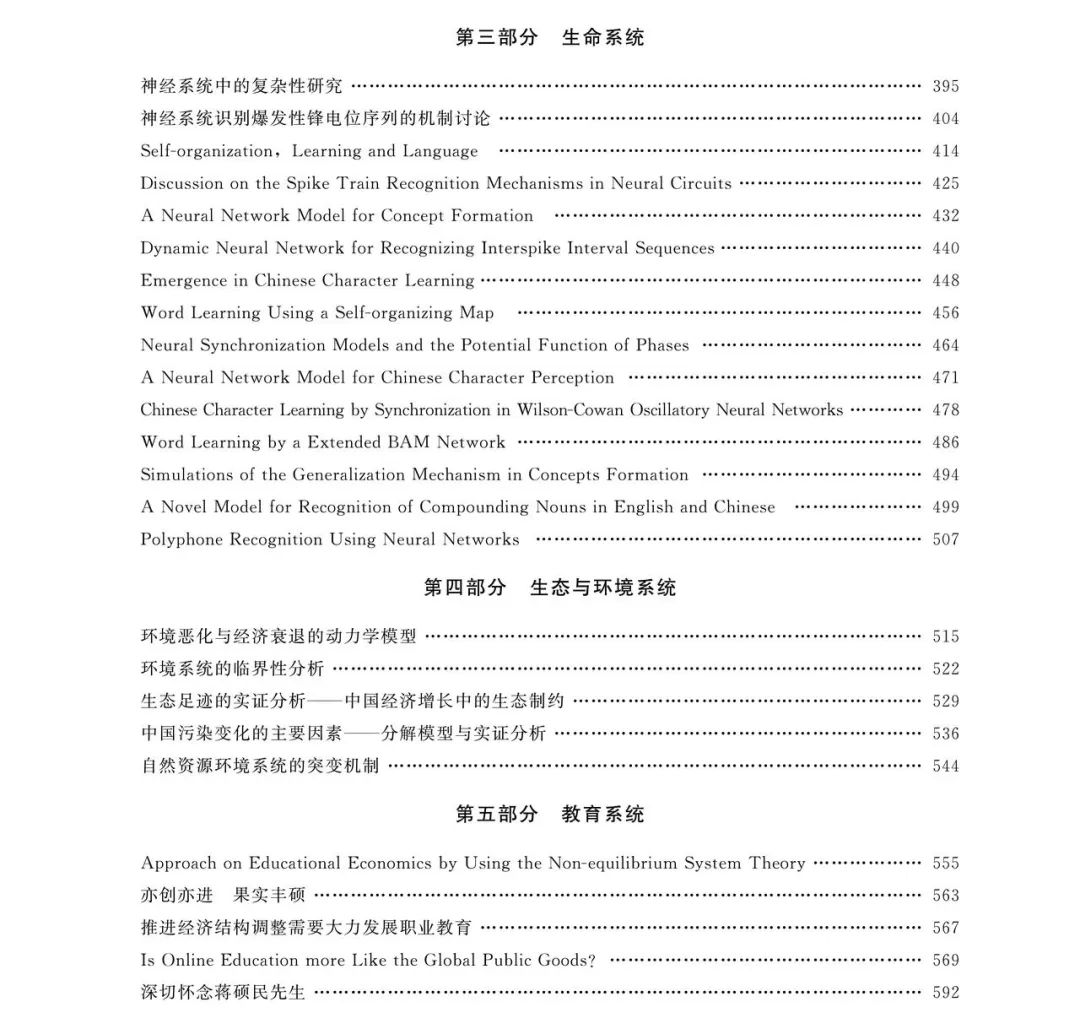除了以上核心科学领域外,文集中还收录了方福康先生在其他科学问题上的研究成果,包括他对教育管理、经济改革等实践问题的思考。这些研究工作,展现了方福康先生擅于利用复杂性研究的思想和方法处理具体而不同的复杂对象的学术思想和学术能力,也向我们展现了推动系统科学发展的基本思想和途径。