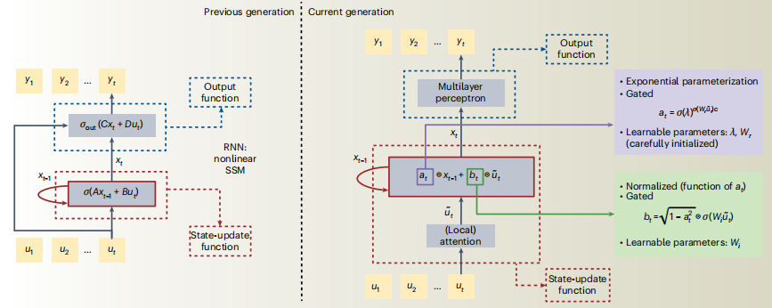 图1:用于序列处理的前一代与当前一代神经网络模型