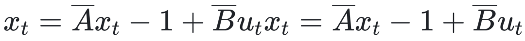 其中,A为状态转移矩阵,B为输入矩阵。通过适当离散化(如零阶保持法),该模型可转化为线性 RNN 形式: