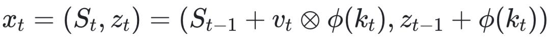 Transformer 的自注意力机制需对所有 token 对进行相似性计算,但其计算复杂度随序列长度L呈平方增长O(L2),限制了其在长序列任务中的扩展性。为解决这一问题,线性 Transformer 重构了注意力核函数,使用非线性特征映射ϕ(⋅)将 query 和 key 映射至低维空间,使得注意力得分可以写作矩阵外积形式,从而将复杂度降至将 query 和 key 映射至低维空间,使得注意力得分可以写作矩阵外积形式,从而将复杂度降至O(L)。