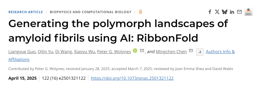 [5] Guo, Liangyue, et al. “Generating the polymorph landscapes of amyloid fibrils using AI: RibbonFold.” Proceedings of the National Academy of Sciences 122.16 (2025): e2501321122.
