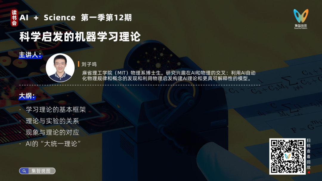 本论文的第一作者刘子鸣是集智社区科学家,他的研究兴趣在AI和物理的交叉:一方面AI for Physics,利用AI工具自动化物理规律和概念的发现;另一方面Physics for AI,利用物理启发构建AI理论和更具可解释性的模型。在集智分享过:科学启发的机器学习理论。扫码查看视频👇