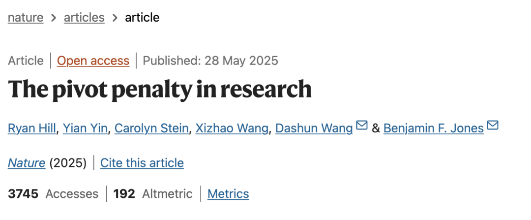 Nature:跨界探索的代价有多大?科研“枢轴惩罚”现象解读