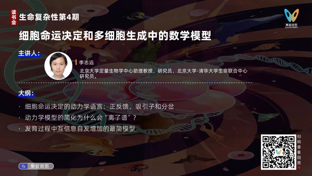 讲座推荐:多细胞生物生长发育的过程中,共享同一遗传密码的细胞需要在上百种不同的命运中进行“选择”,在时间和空间上形成高度有序的形态。自数十年前起,研究者们就开始探究细胞命运决定中的网络动力学模型,以反馈、吸引子、分岔等一系列数学语言来定量构建细胞命运决定的地形图。扫码查看视频👇