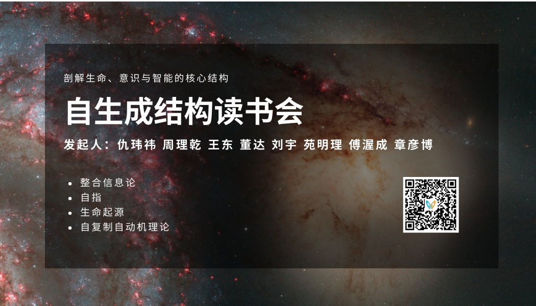 为了更深入地认识复杂活系统的自生成结构,集智科学家小木球(仇玮祎)联合周理乾、王东、董达、刘宇、苑明理、傅渥成、章彦博等科学哲学、计算机科学、物理学和生物化学等学科的一线研究者共同发起组织《自生成结构系列读书会》。其中第一季《共识——自生成结构与自复制自动机的研究背景》已经完结,读书会所形成的自生成结构社群集结了相关领域的教授、硕博及产业界人士。现在报名读书会即可解锁第一季读书会所有录播视频并入群,欢迎从事相关研究、对相关领域有浓厚兴趣的探索者报名参与交流。