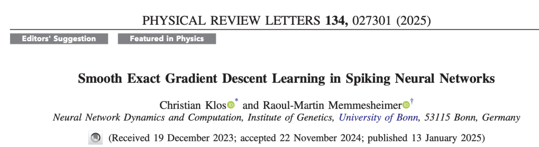 PRL速递:尖峰神经网络中的光滑精确梯度下降
