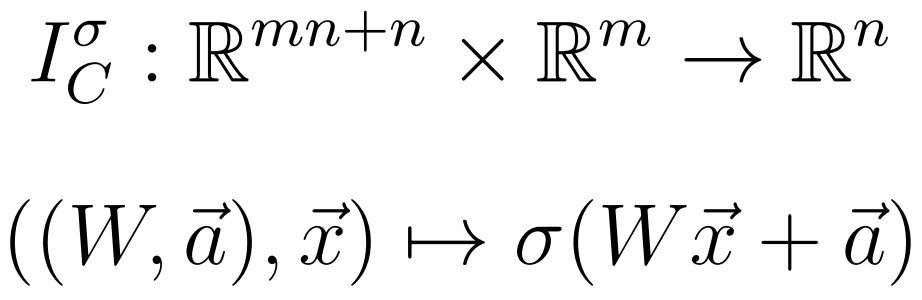 。定义Iσ把1-层(m,n)-型神经网络C映为带参数可微函数 :