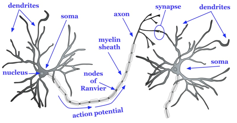 (2)神经通讯:神经元之间的通讯通过电信号和化学信号进行。当一个神经元接收到来自其他神经元的信号时,它会在细胞体内处理这些信息,如果累积的输入足够强,就会产生一种称为动作电势的电脉冲。
