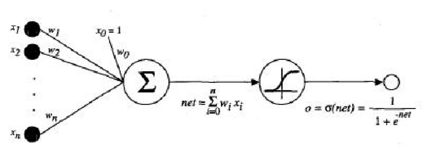 一个面板的神经元怎样输出信息:我们假设第i个神经元的电势是xi,而输出强度是xi的wi倍 (称wi为权), 于是总输出电势是net=∑wixi,然后设σ是个管线路开关的函数,即当电势达到某个数字便打开线路,把信号输出到下一个面板的某一个神经元。