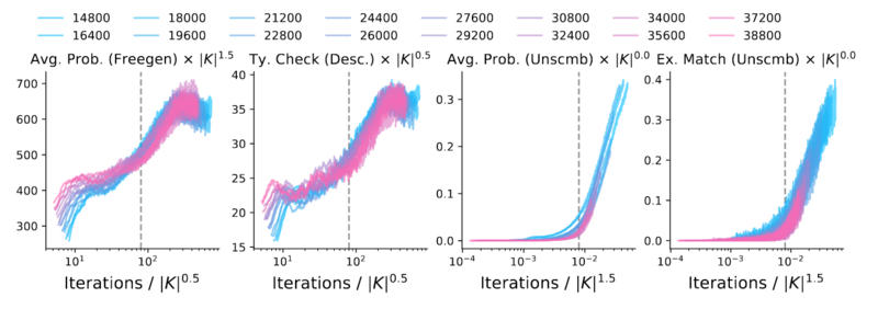 实验结果如上图所示,模型对描述性结构的学习,确实存在一个清晰的“转折点”,这个转折点的位置正比于![]()