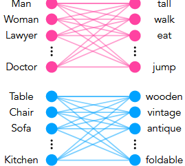 例如,“Man–Walk”可能可达,“Lawyer–Ring”永远不可达,意味着后者不能合理组合。