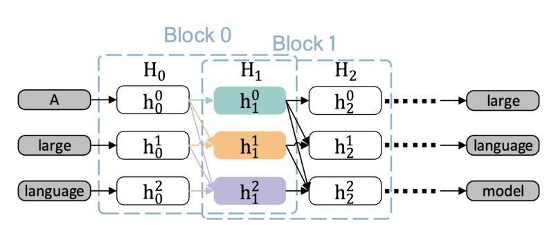 大语言模型的下一个token预测机制(Next-token-prediction,NTP)可以被建模为一个马尔可夫过程, 如下图所示。对于任意的Transformer模块 l ,给定输入token长度T和隐状态维度D,输入表征由