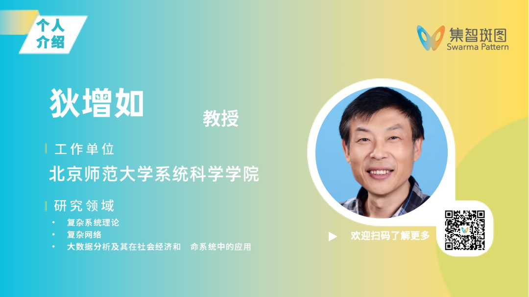 北京师范大学系统科学学院教授,集智俱乐部、集智学园创始人,集智科学研究中心理事长,曾任腾讯研究院、华为战略研究院等特聘顾问。主要研究领域包括因果涌现、复杂系统分析与建模、规模理论等。