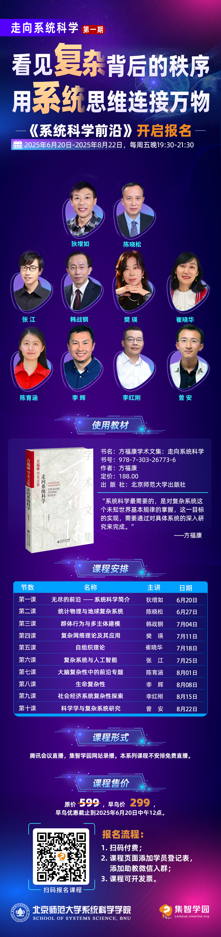 在这个人工智能飞速发展、社会变迁愈加加速的时代,人类社会已然进入一个“系统时代”。面对系统性风险、跨学科挑战、多尺度现象,如果你也在寻找一条连接微观机制与宏观现象、理论抽象与实践问题的路径,那你一定不能错过这场系统科学的思想盛宴。