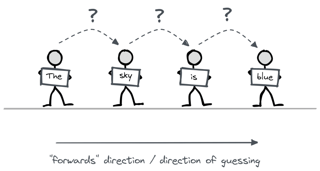 这篇博客建立了一个Transformer的隐喻:一群人排成一队,每人(残差流中的向量)手里拿着一个单词 ([2]) 。每个人都知道自己的单词和在队伍中的位置,但他们看不到队伍中的其他人。每个人的目标是猜出前面的人拿着的单词。人们可以向队伍中站在他们后面的每个人大声提问(前面的人听不到)(注意力头)。听到问题后,每个人都可以选择是否回答,以及将哪些信息传达给提问者(MLP)。此后,人们不会记住他们被问到的问题(因此信息不能在队伍中后退,只能前进)。当队伍中的个人从这些交流中收集信息时,他们可以使用这些信息来组织后续问题并提供答案。