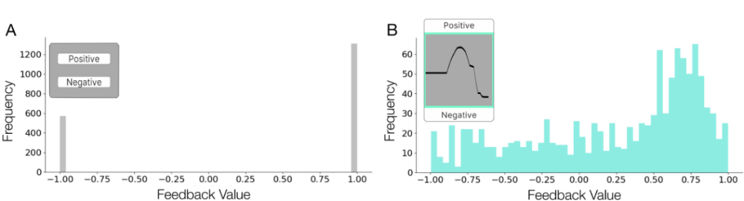 图2. 与传统的离散反馈(A)相比,同一实验对象在同一任务中提供的连续反馈(B)包含更丰富的信息。