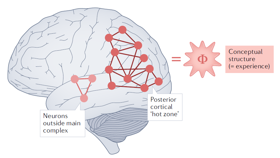 整合信息论并不排斥存在像你我所拥有的那种,在外部世界和视觉脑或听觉脑之间的规律性映射。事实上,整合信息论中有一个叫做 “中心恒等”(central identity)的概念,它表明意识体验与内在因果影响力的总和是等同的,或者说,能够被内在因果影响力的总和完全解释,一一对应,两边都没有剩余。你体验的每一个方面,包括每一个记忆、每一个想法、每一个梦,都可以得到完全的解释。当然,这仅是理论假说,存在被证伪的可能。