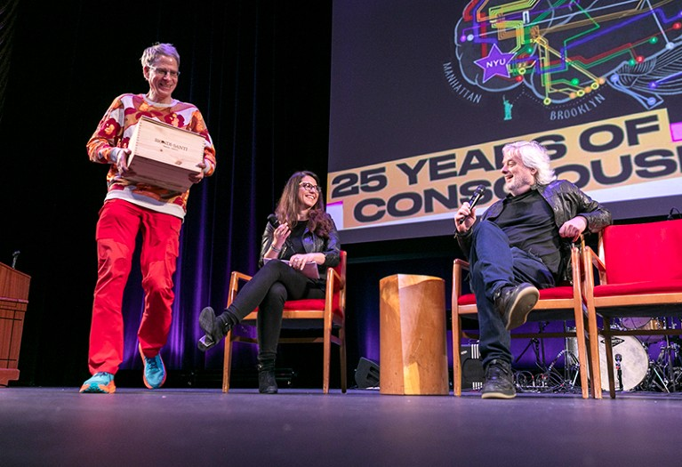 所以两年前我们有了一次会面,那是作为“对抗性合作”的一部分。当时坦普尔顿基金会启动了一个项目,他们让意识领域的两大主流理论,整合信息论(Integrated Information Theory)与全局神经元工作空间理论(global neuronal workspace theory),直接对决,类似1919年通过日食观测验证光线偏折符合牛顿力学或爱因斯坦相对论的著名实验。