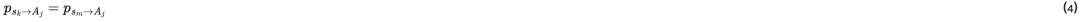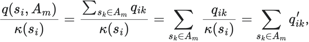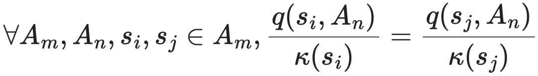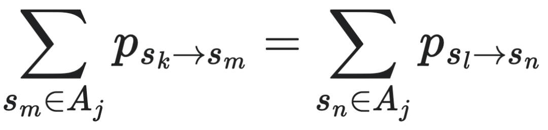 根据式子2的定义,也就是说,Ai里的每一个状态sk转移到Aj中的所有状态的转移概率之和是相同的,即: