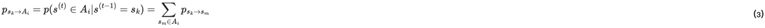 为系统上一时刻处于微观态sk,下一时刻处于分组Ai中的任意一个微观态的概率,以及: