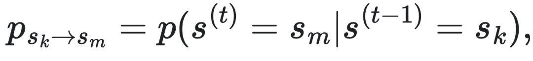 为状态sm到sk的转移概率,以及
