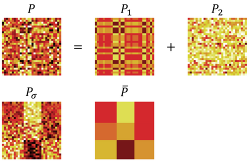 然而,在实际应用中,我们经常遇到的矩阵可能并不完美。例如,成块的矩阵的状态排序可能被打乱(如图8中的P1),或者矩阵包含了如P2的噪声(如图8中的P,P=P1+P2,