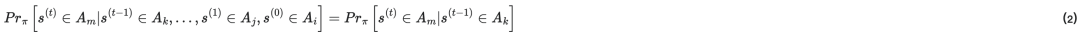3. 式子1.3:历史依赖转移概率:已知微观状态分布为π,并且已知系统的历史微观状态{s(0),...,s(t−1)}分别对应某个宏观状态{Ai,Aj,⋯,Ak},那么系统在时间t,它的微观状态s(t)属于某个宏观状态Am的概率;