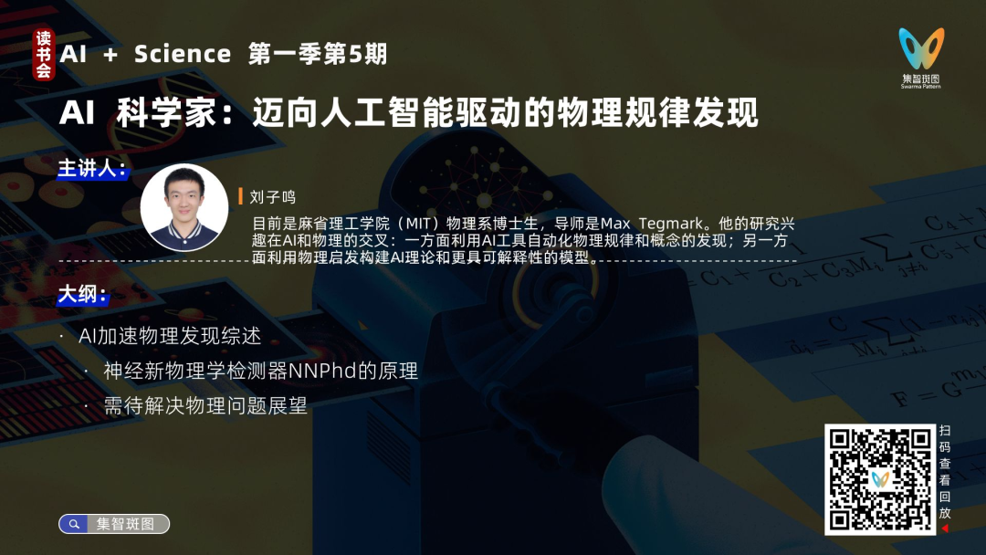 本文作者刘子鸣和其导师Max Tegmark都在集智做过精彩报告,这里推荐刘子鸣关于AI驱动的物理规律发现的相关讲座,你也可以在集智斑图平台检索更多相关内容。