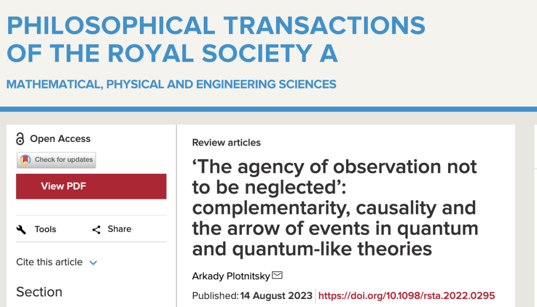 论文题目:‘The agency of observation not to be neglected’: complementarity, causality and the arrow of events in quantum and quantum-like theories