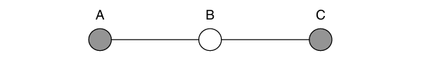 如图4所示,在一个三人网络中,B 节点连接 A 和 C,而 A 与 C 无法直接连接。由于 A 与 C 都只有 B 这一交易对象,而 B 可自由选择对象,因此 B 在博弈中占据主导地位。这种优势并非来源于“连接数量”,而是因为他人对 B 的依赖性。