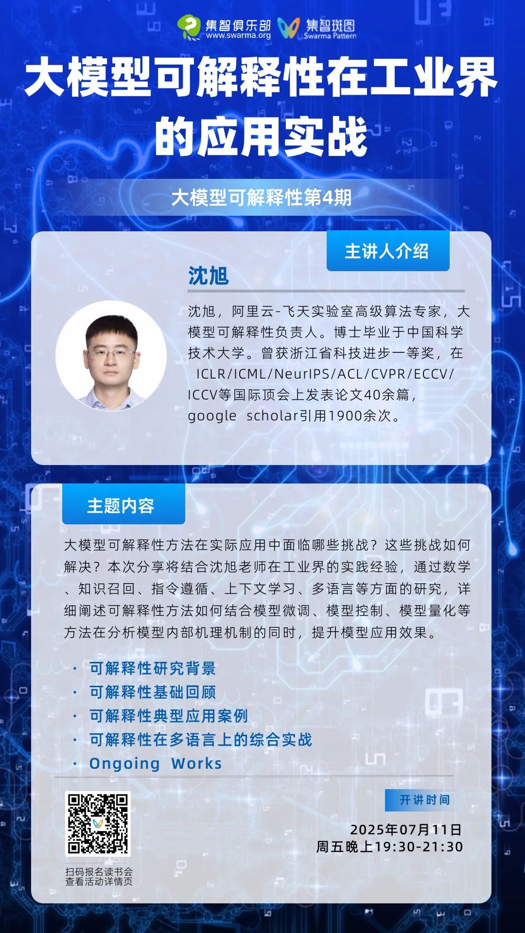 扫码参与「大模型可解释性」读书会,加入社群,获取系列读书会永久回看权限,与社区的一线科研工作者沟通交流,共同探索大模型可解释性这一前沿领域的发展。